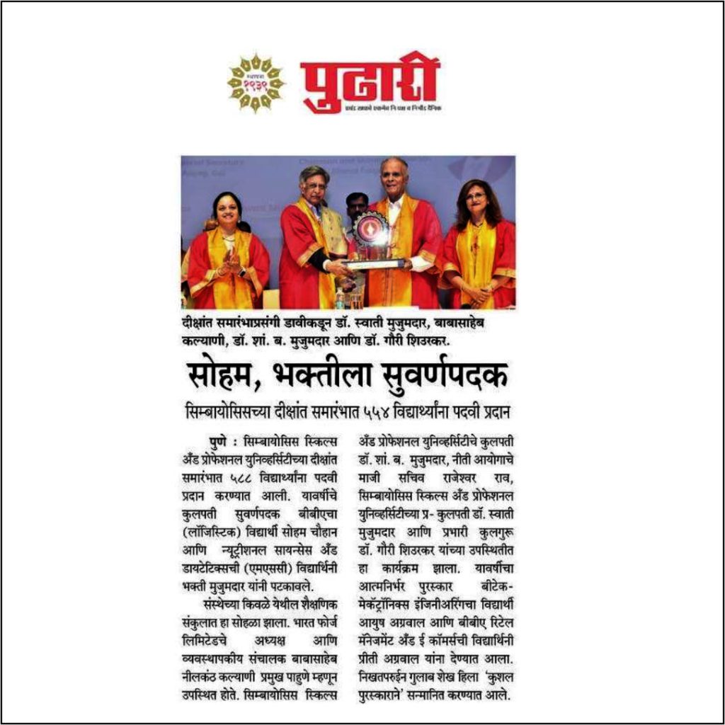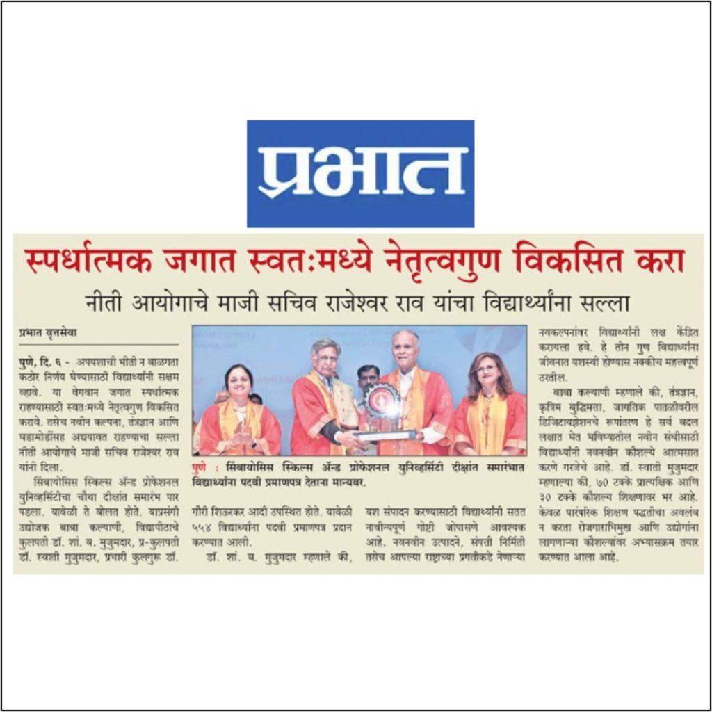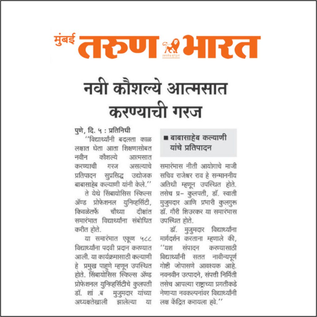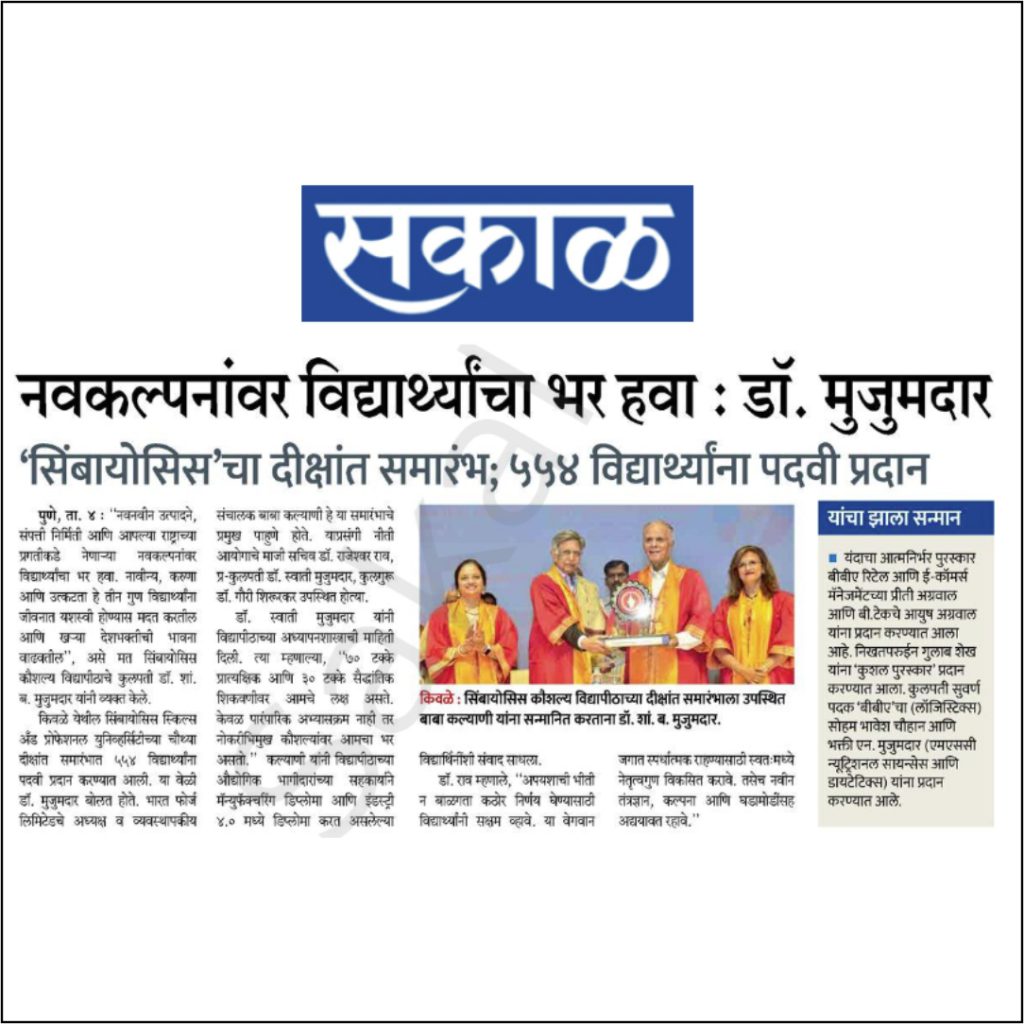 The ceremony was started with Welcome address by Vice Chancellor Dr. Gauri Shiurkar, and Speech by Pro Chancellor of Symbiosis Skills and Professional University Dr. Swati Mujumdar highlighting the importance of Skills and Learning by Doing.